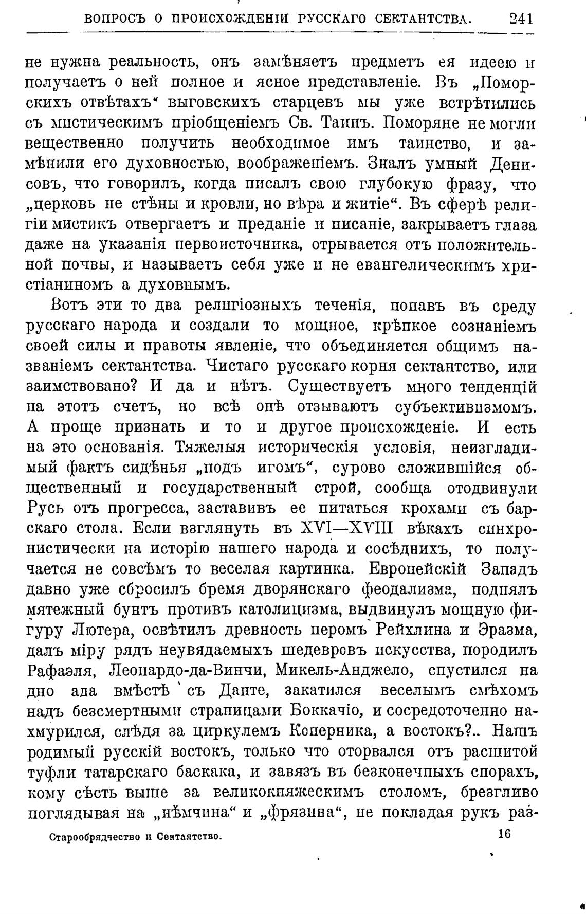 ВОПРОСЪ О ПРОИСХОЖДЕНШ РУССКАГО СЕКТАНТСТВА.