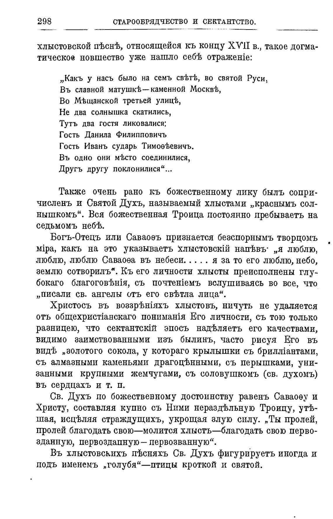 Въ хлыстовскихъ пВсняхъ Св. Духъ фигурируетъ иногда и
