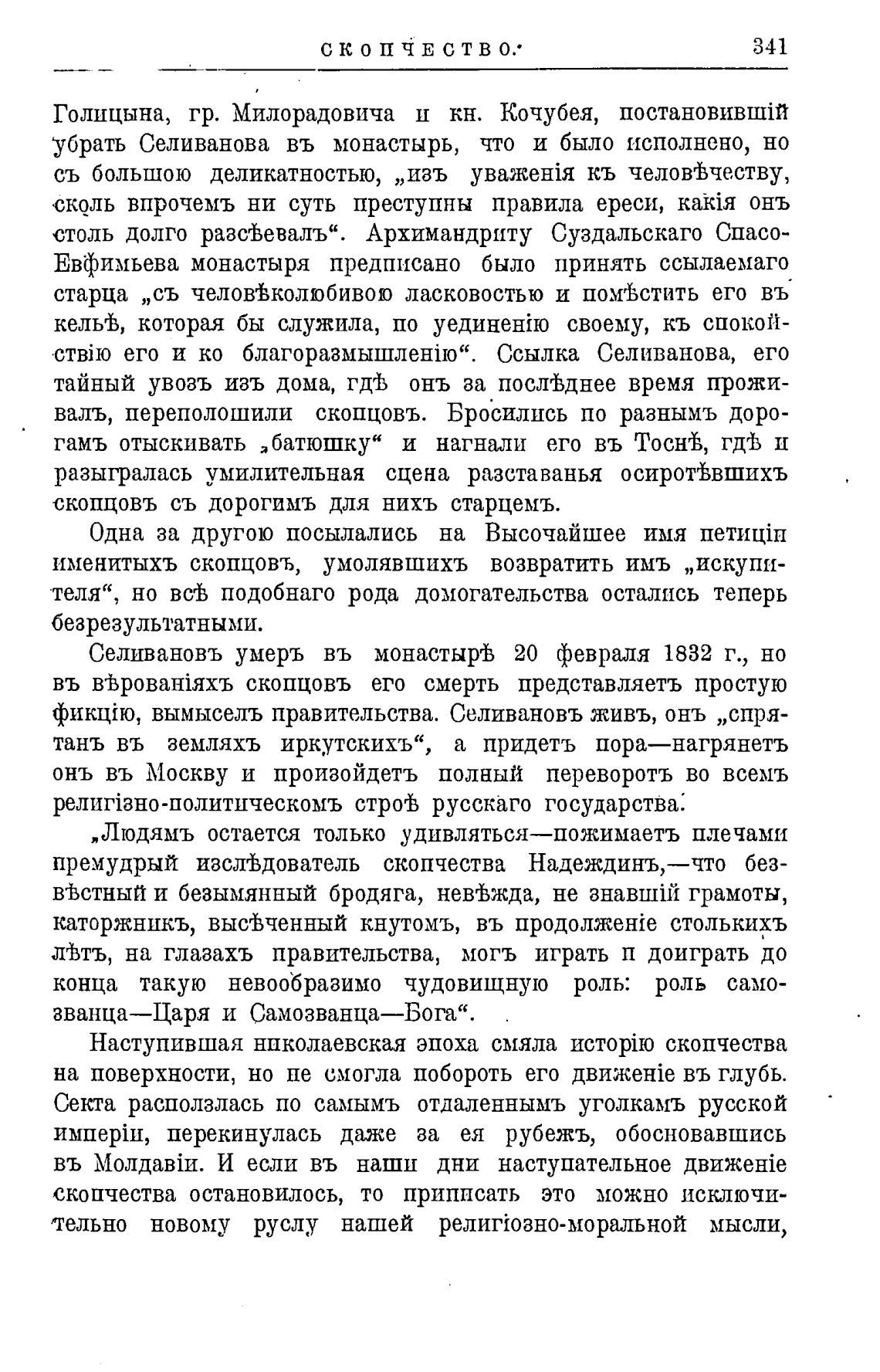 премудрый изсл±дователь скопчества Надеждинъ,—что без-
