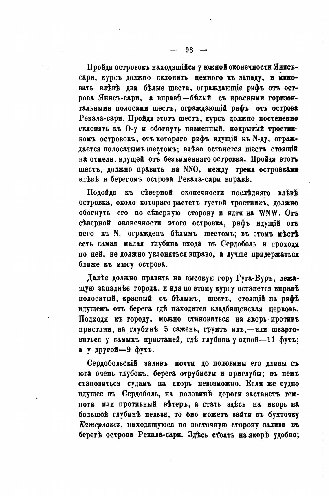 есть самая малая глубина входа въ Сердоболь и проходя