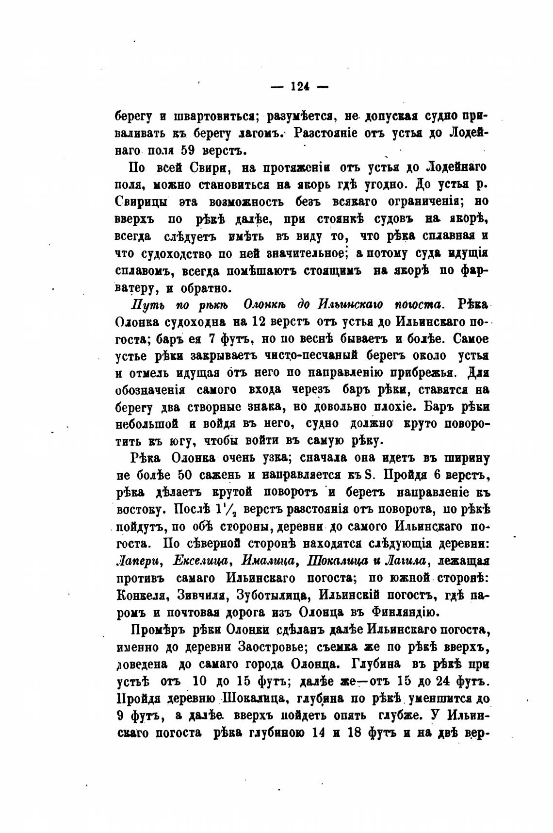 Олонка судоходна ва 12 верстъ отъ устья до Идьивскаго по-