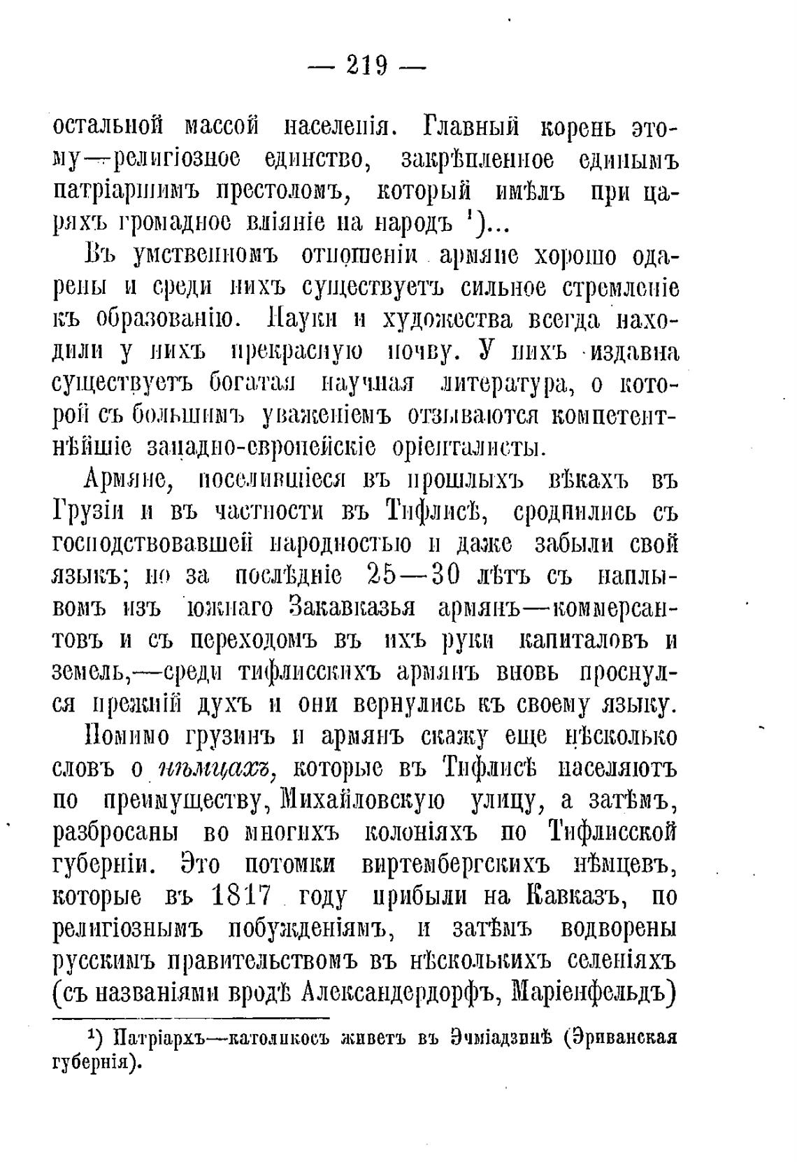 1) Патртрхъ—католикосъ живетъ въ Эч)йадзинв (Эриванская