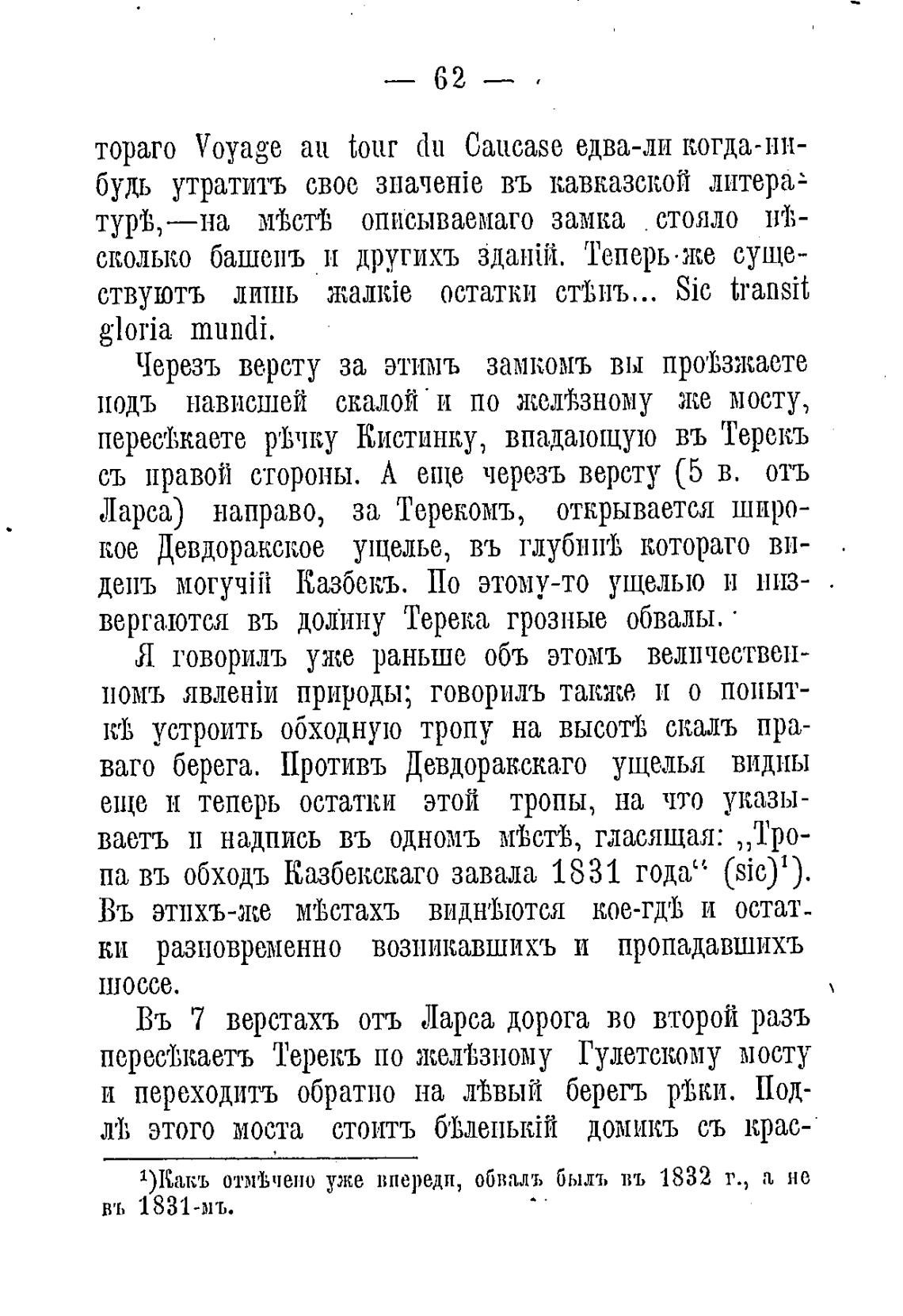 па въ обходъ Казбекскаго завала 1831 года“ (sic)1).