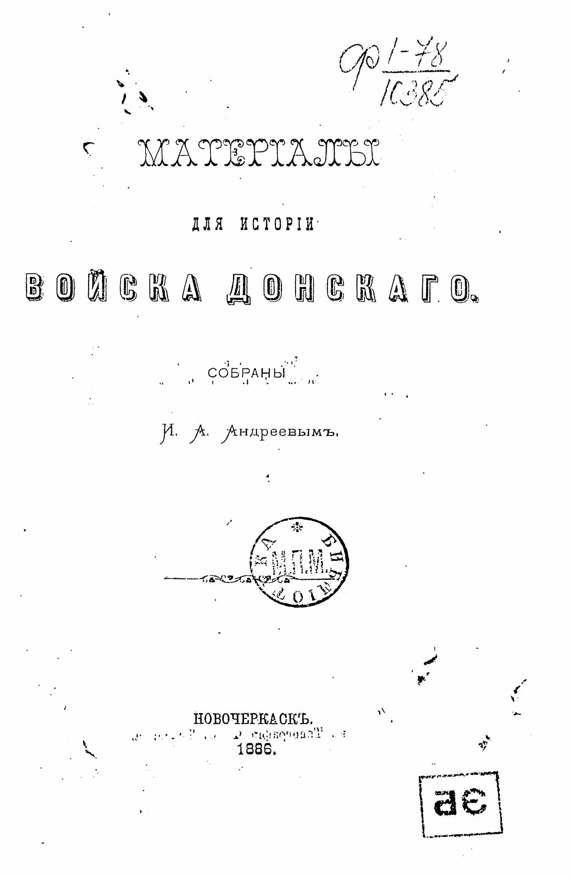 Материалы для истории Войска Донского. - Андреев И. А.