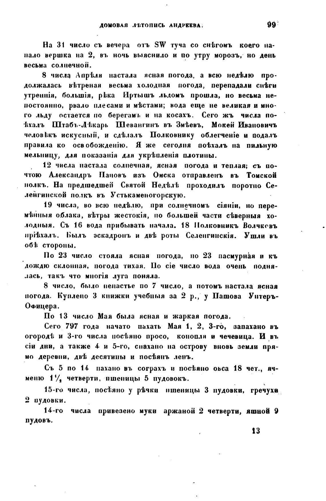 Сего 797 года начато пахать Мая 1, 2, 3-го, запахано въ