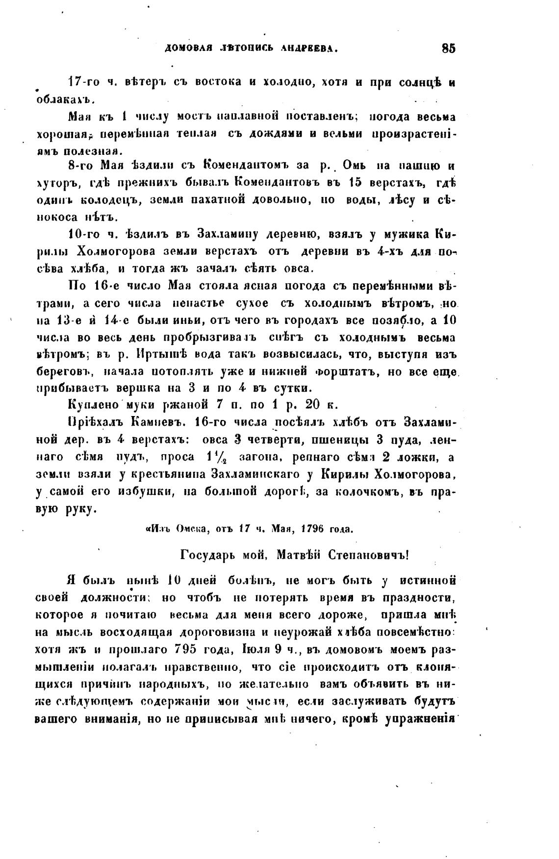 «Иль Омска, отъ 17 ч. Мая, 1796 года.