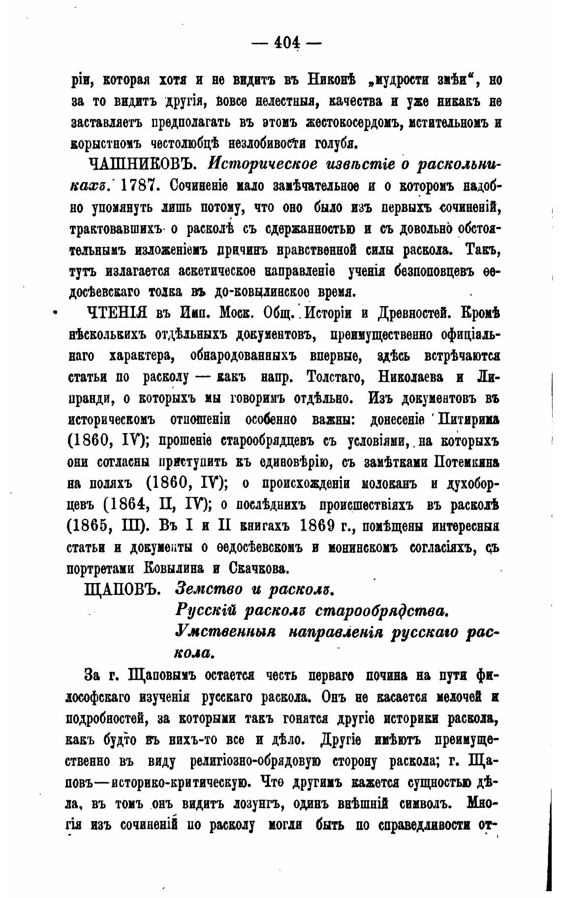 ЧАШНИКОВЪ. Историческое о раскольни-