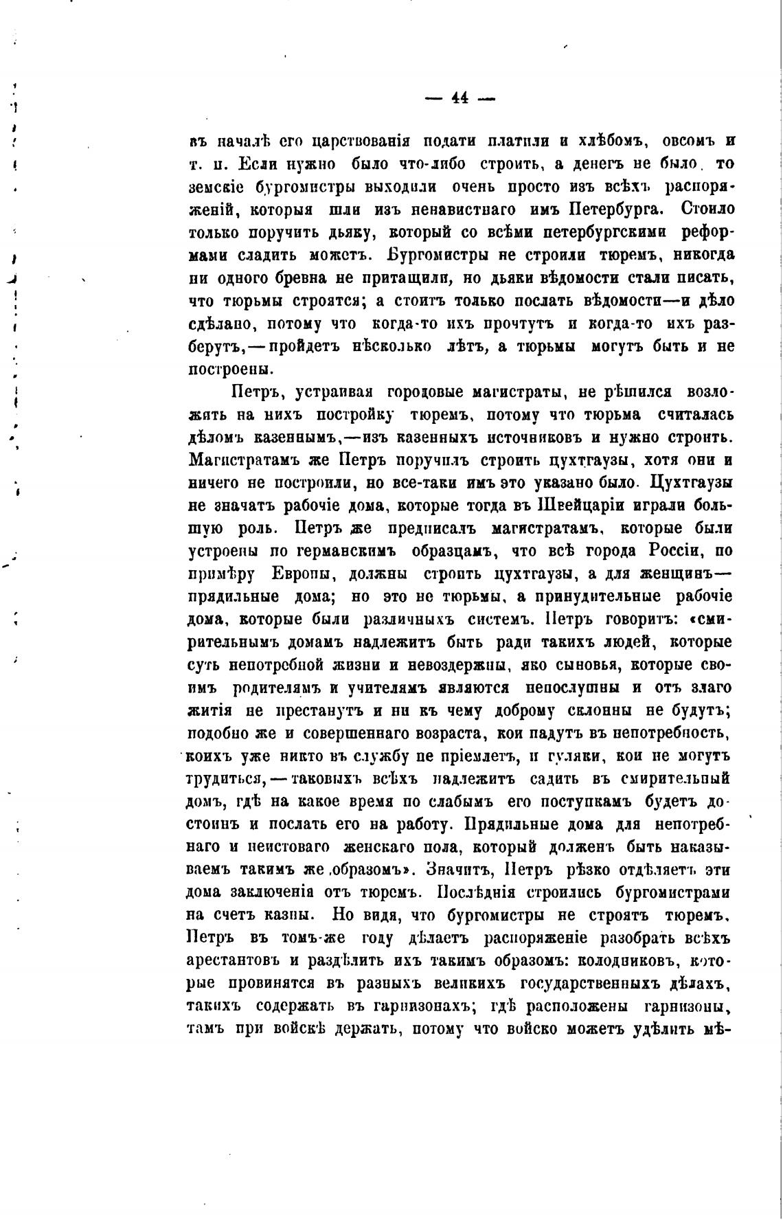 Магистратамъ же Петръ поручилъ строить цухтгаузы, хотя они и