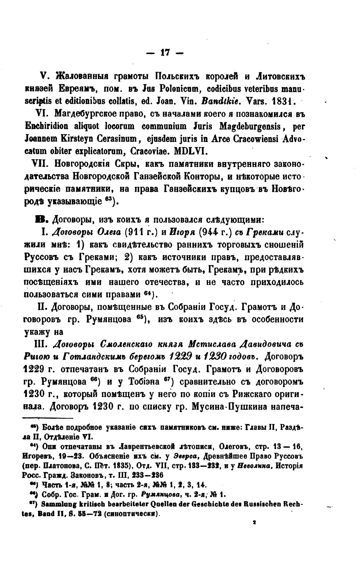 В. Договоры, изъ коихъ я пользовался спдующими: