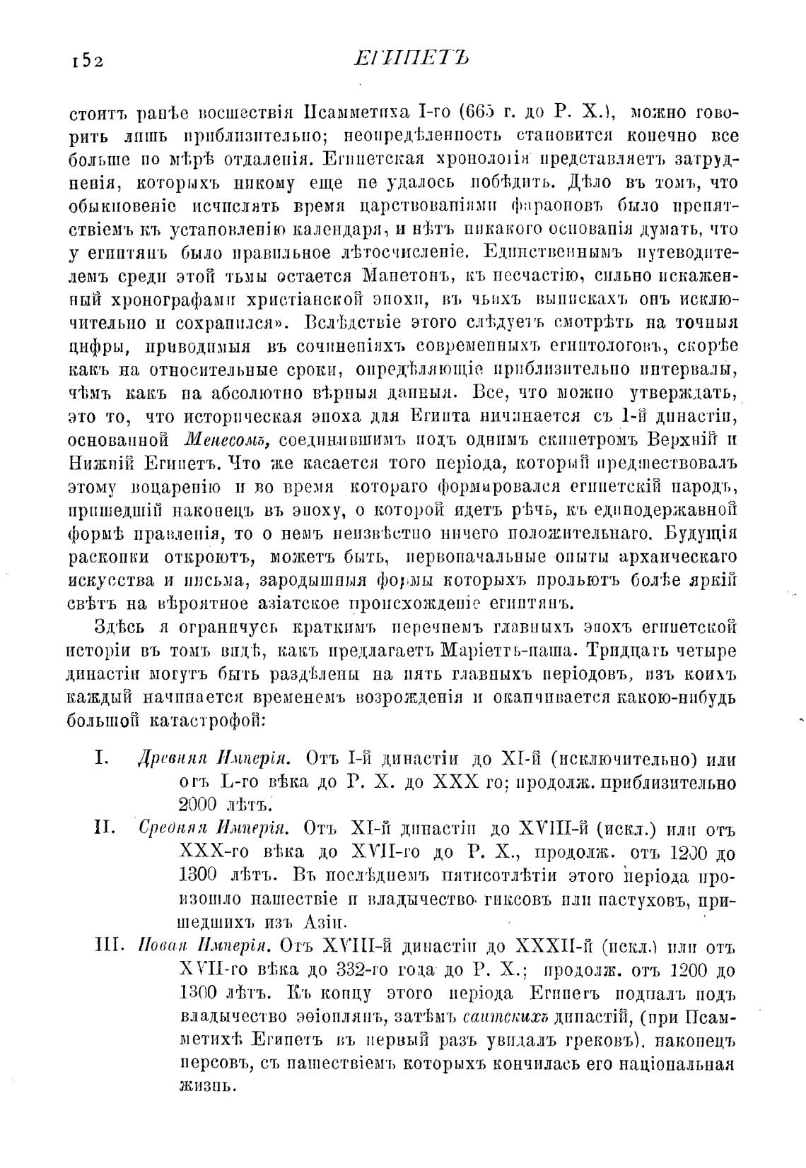 ЗД'Ьсь л ограничусь краткимъ перечнемъ главныхъ эпохъ егииетской