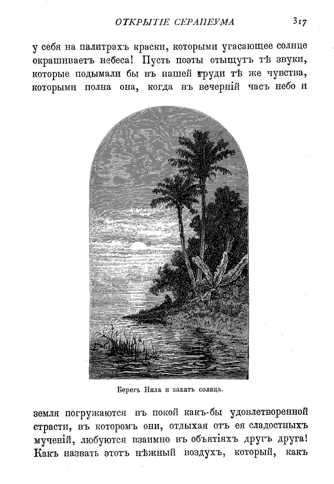 Берегъ Нила и закатъ солнца.