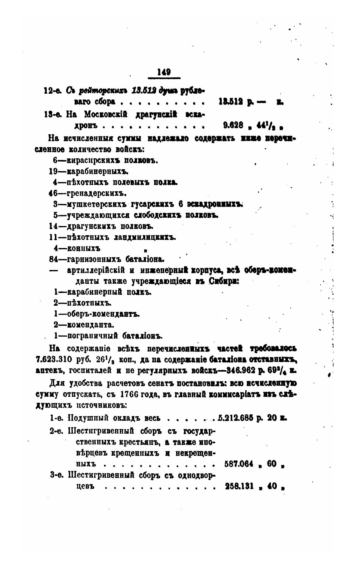 сумку отпускать, съ 1766 года, въ мавный вомиисар{атъ пь