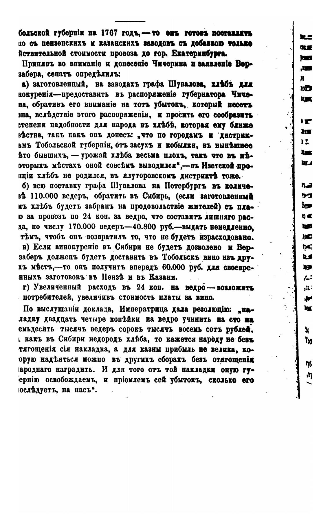 емьдесать тысячь ведеръ соровъ тысачъ восемь сотъ рублей.