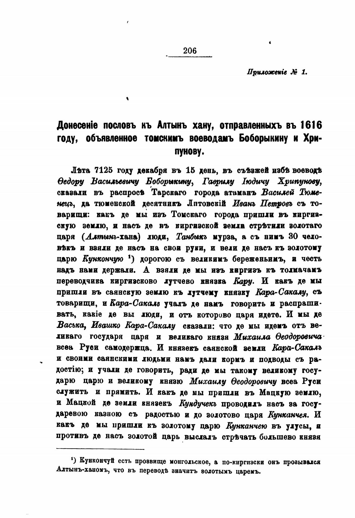 ДоненЈе пословъ кь Алтынъ хану, отправленныхъ въ 1616