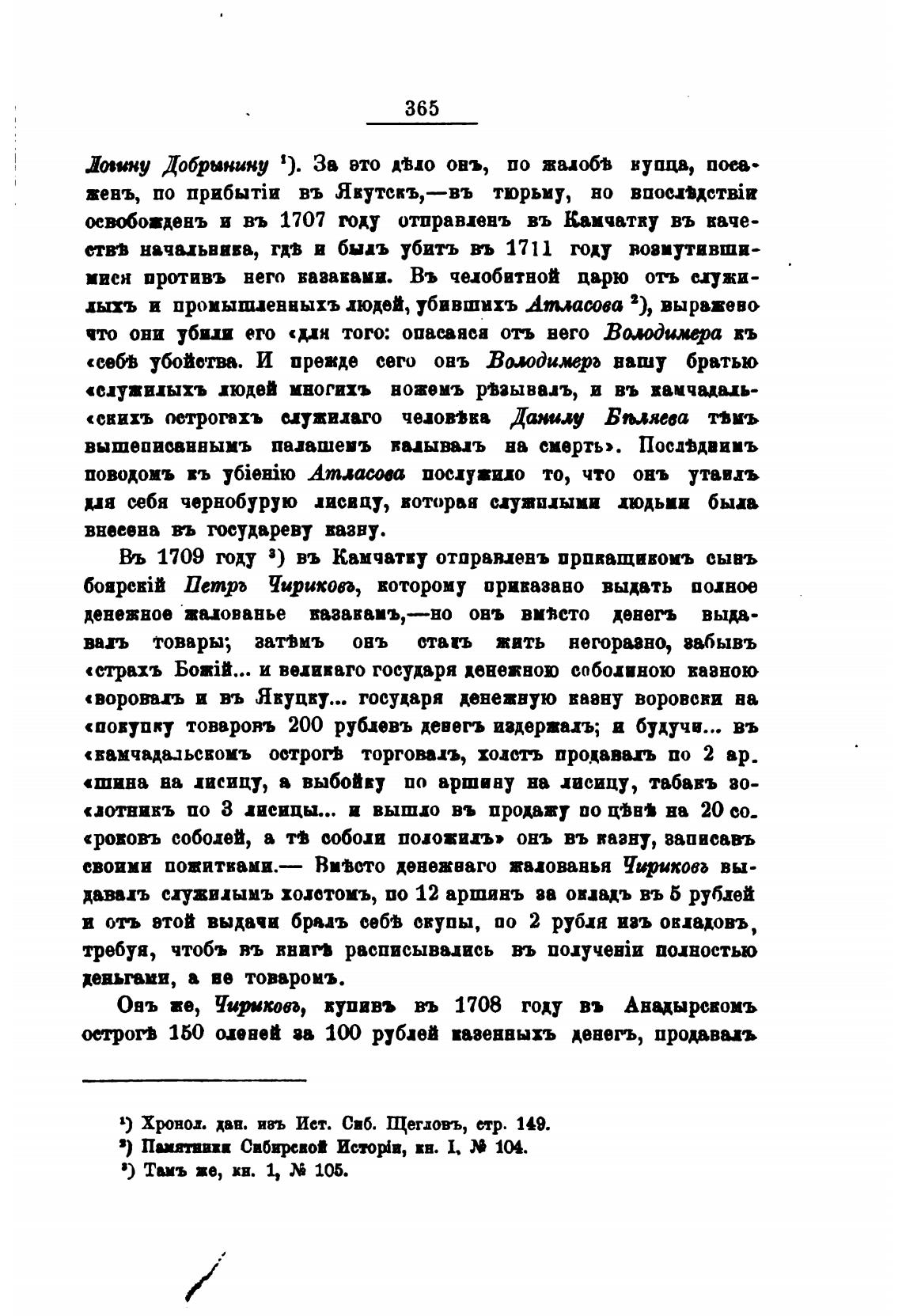 Въ 1709 году 3) въ Камчатку отправлень прпващавомъ сывъ