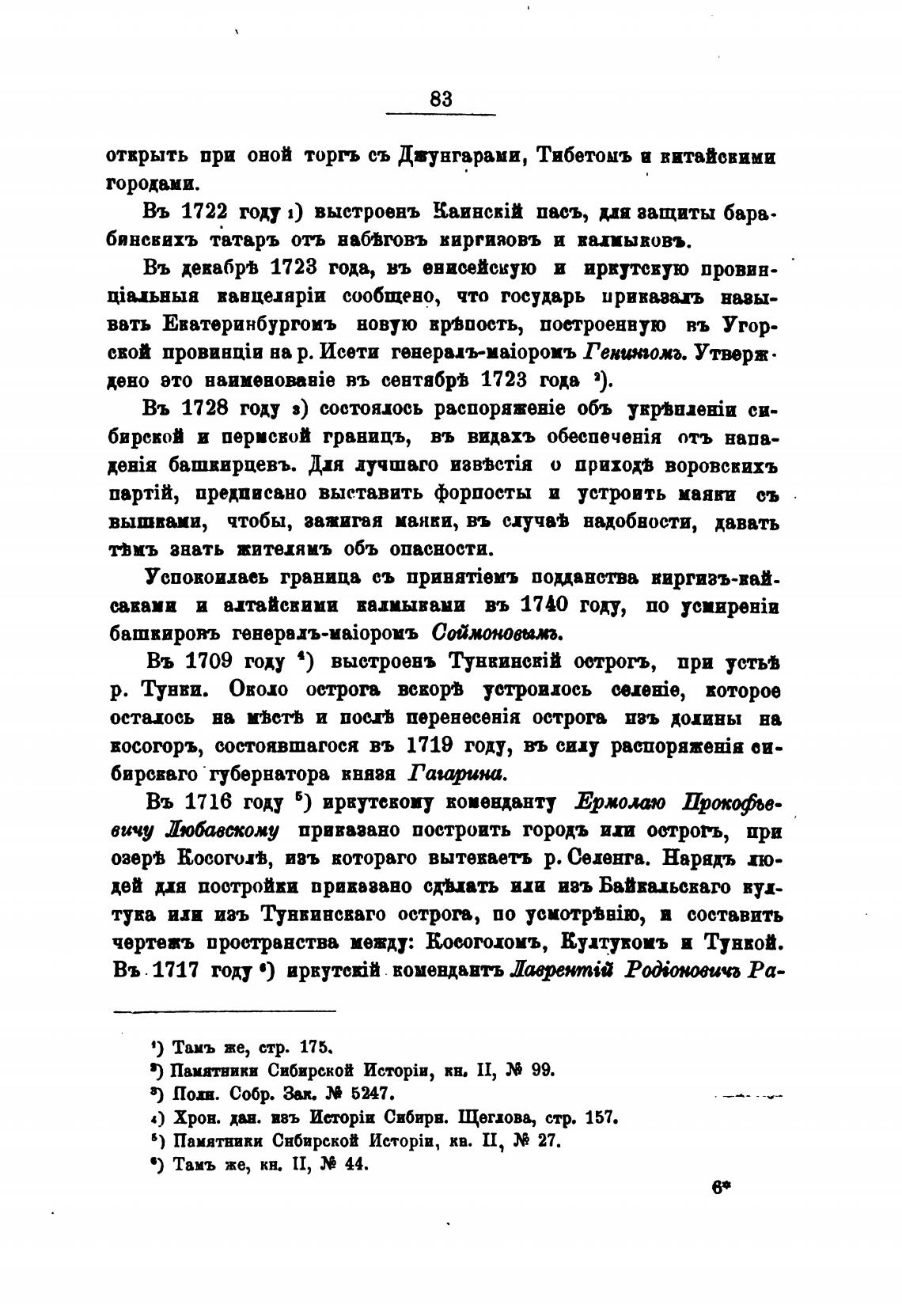 Въ декабрь 1723 года, въ енисейскую и иркутсвую провин-
