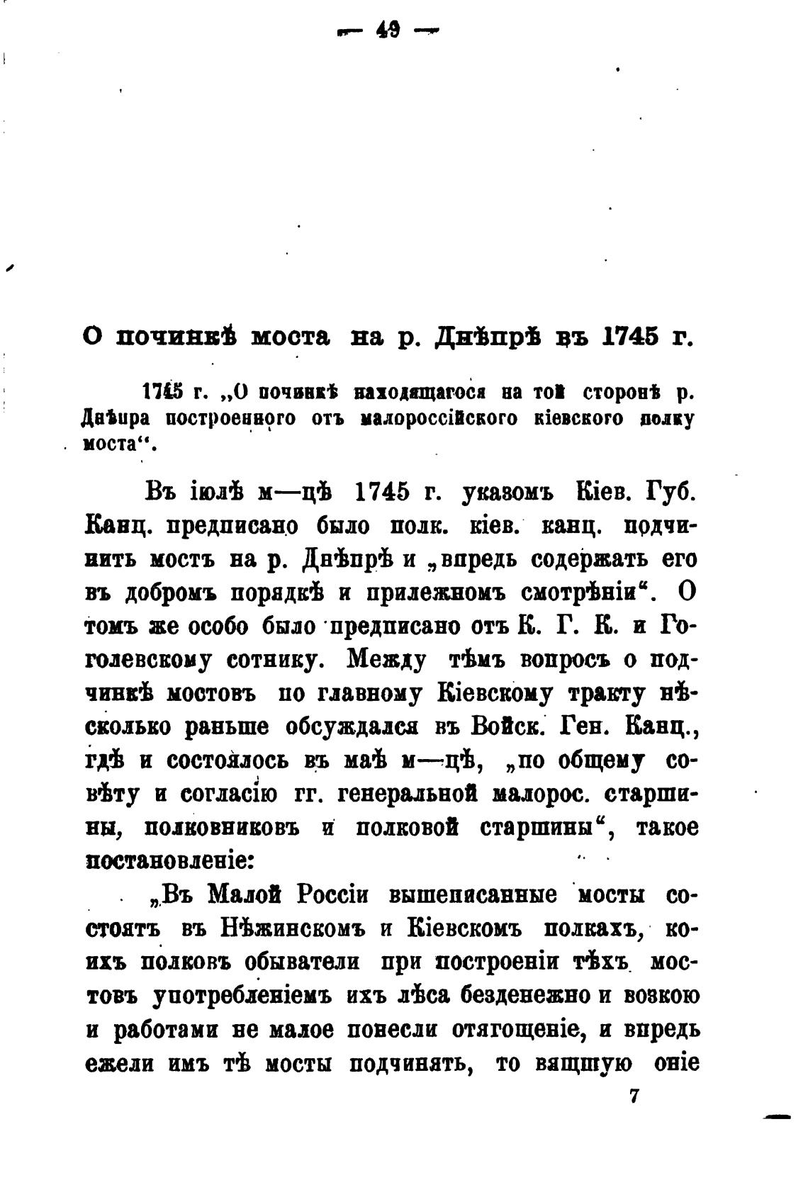 О почив“ моста ва р. Днђпрј въ 1745 г.