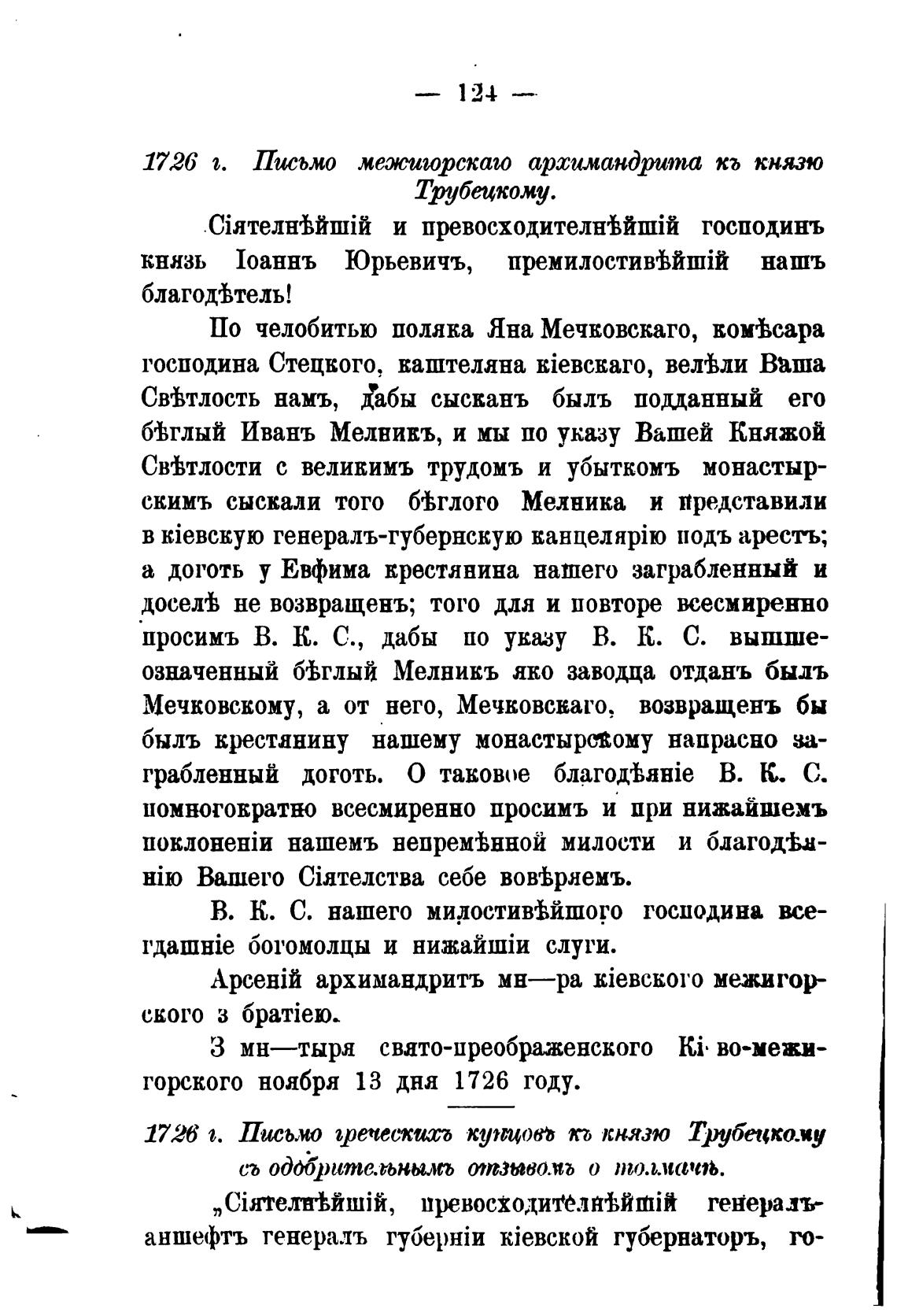1726 з. Письмо межчаорсказо архимандрита кг князю