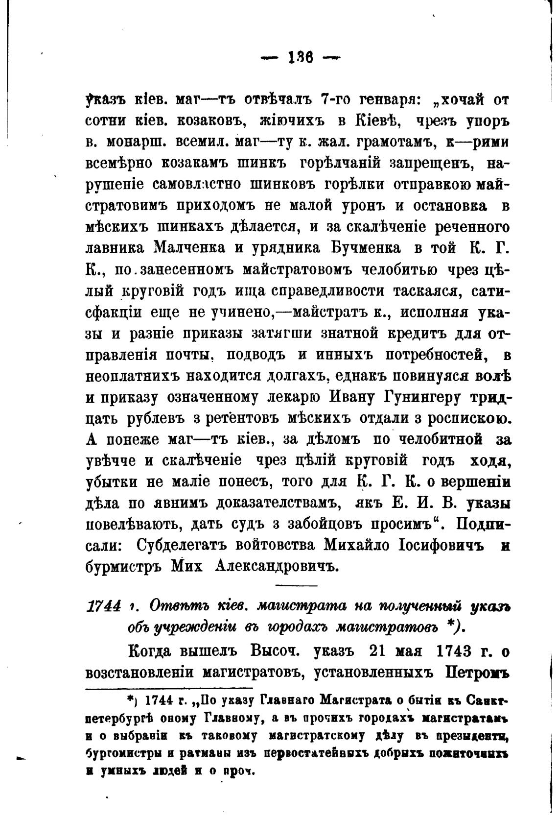 1744 г. „По указу Главнаго Магистрата о 6HTia въ Савке
