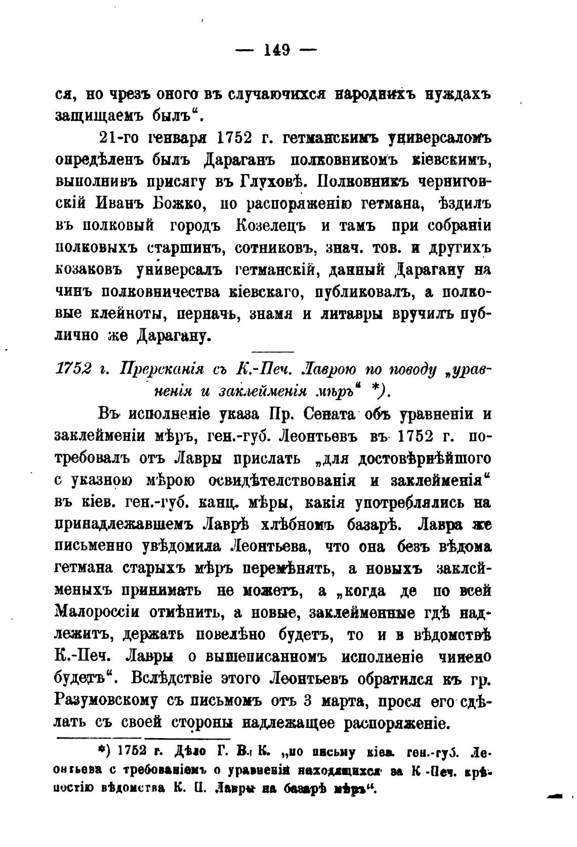 21-го генвара 1752 г. гетмансвииъ универсаломъ