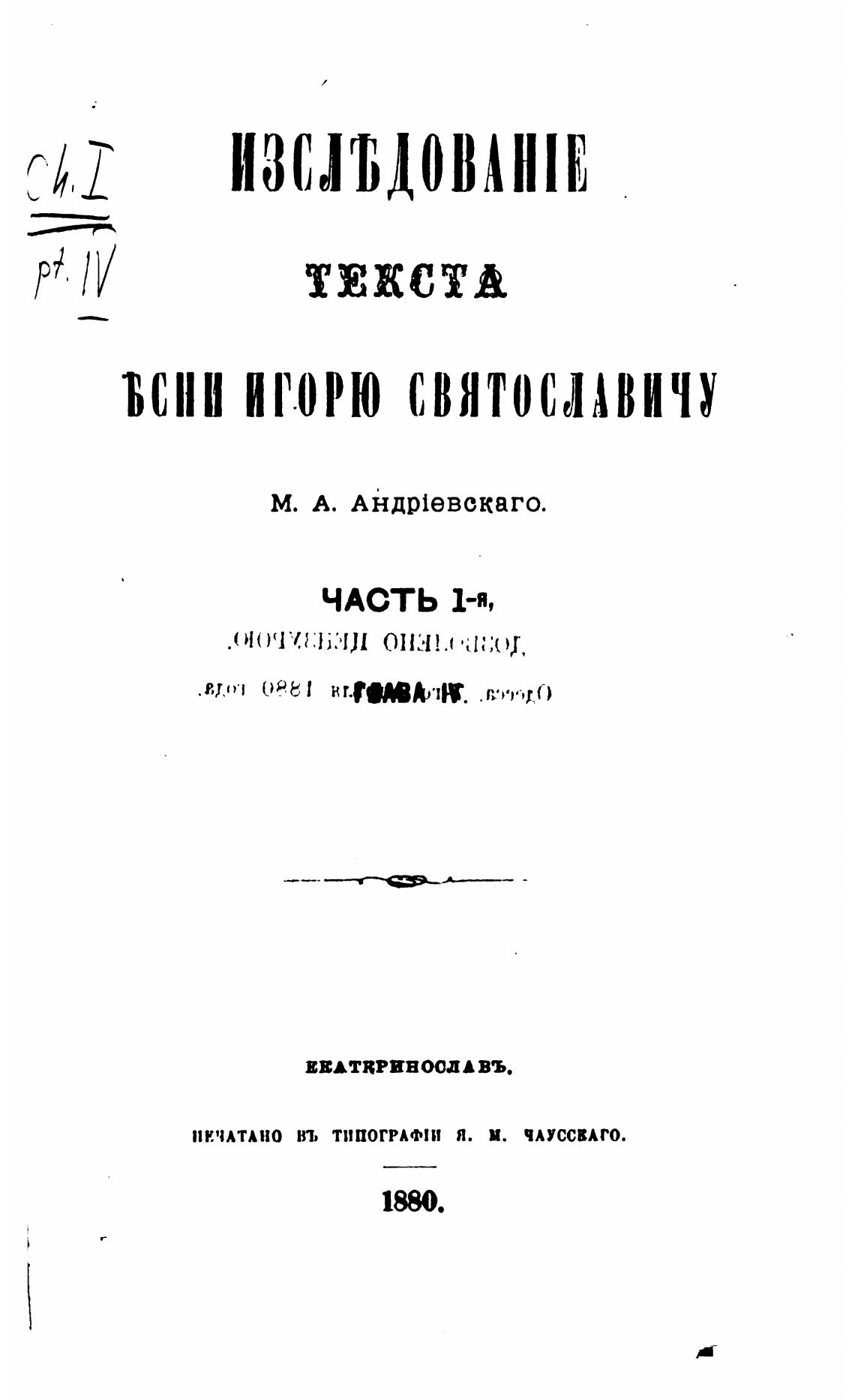 ПЕЧАТАНО вт. ТИПОГРАФIИ Я. И. ЧАУССВАГО.