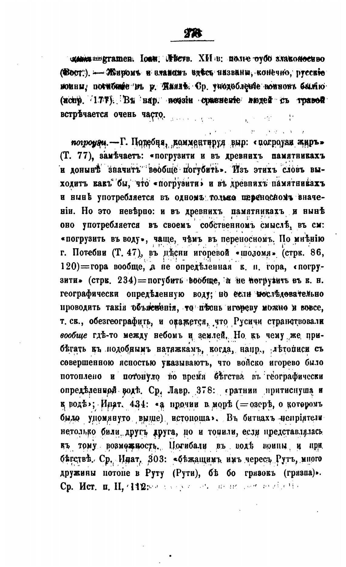 (Т. 77), зам±чаеть: «погрузити и въ древнихъ памятвивахъ