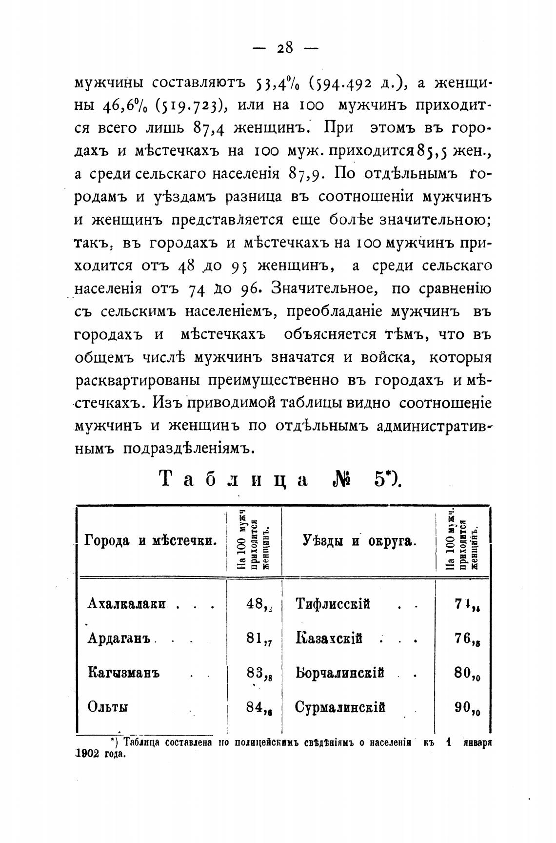 дахъ и мвстечкахъ на 100 муж. приходится 85,5 жен.,