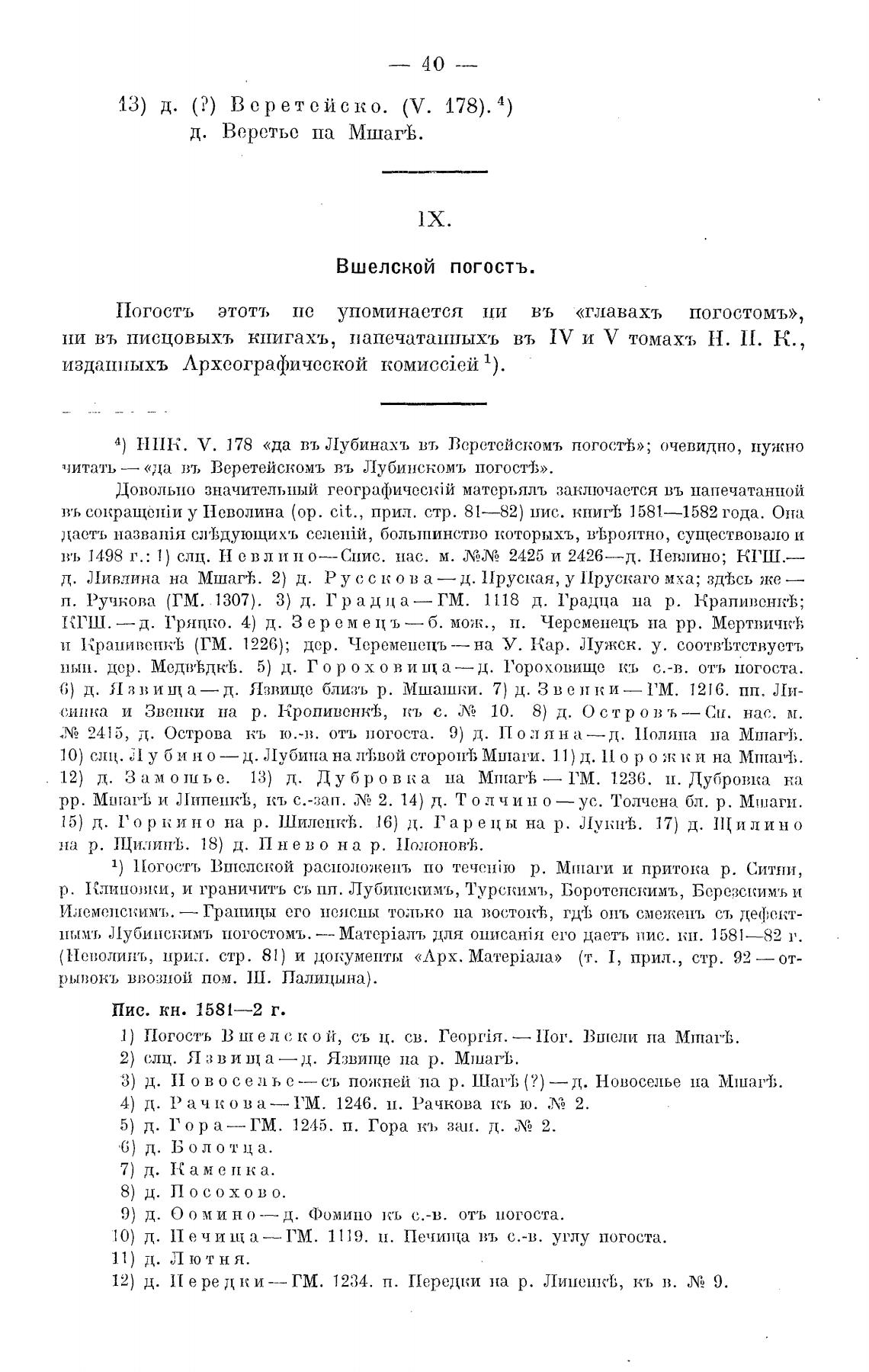 1) Погостъ Вгпелской расположень по течен;ю р, Мниаги и притока р. Ситни,