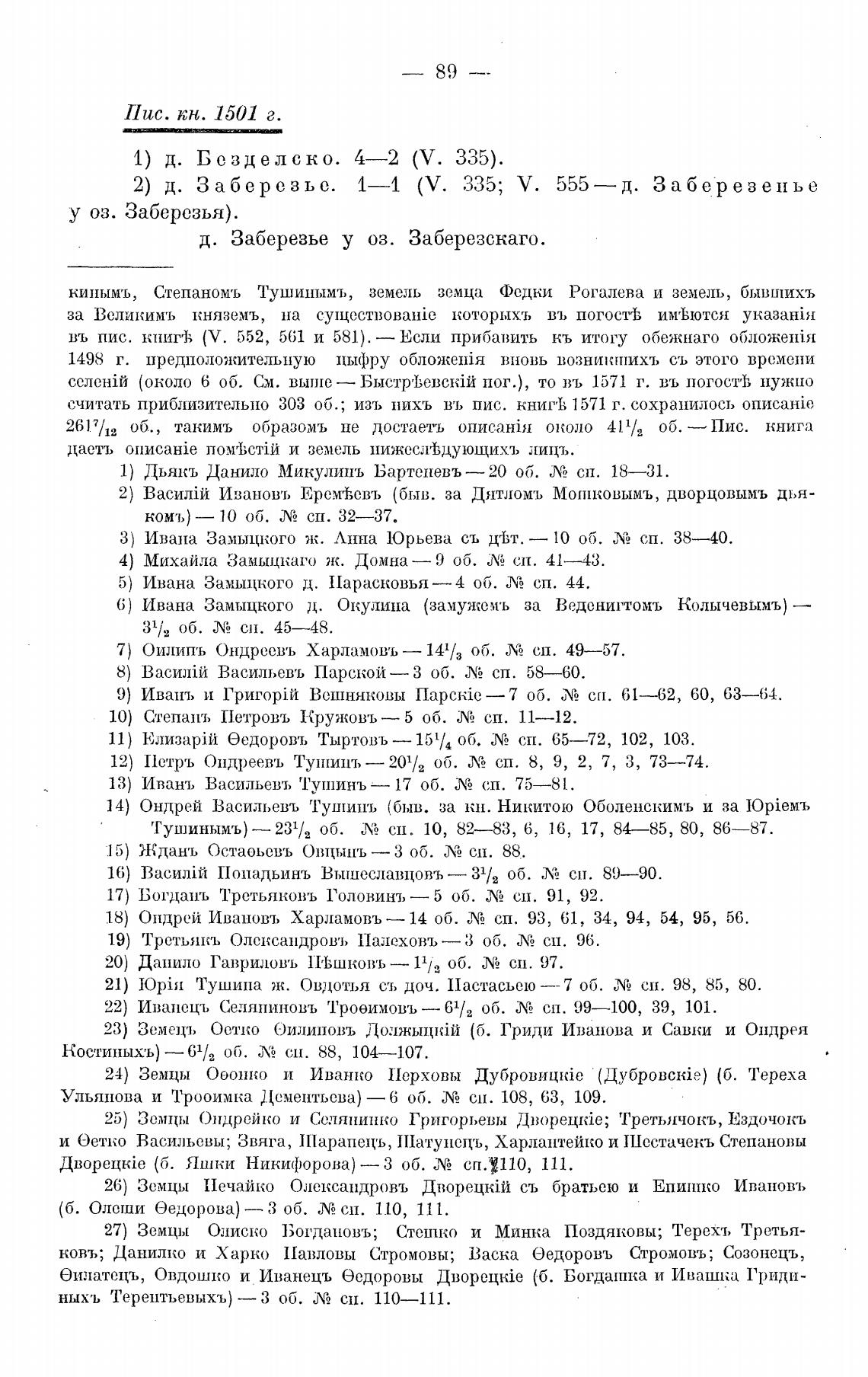 2) д. Заберезье. 1—1 (V. 335; У.