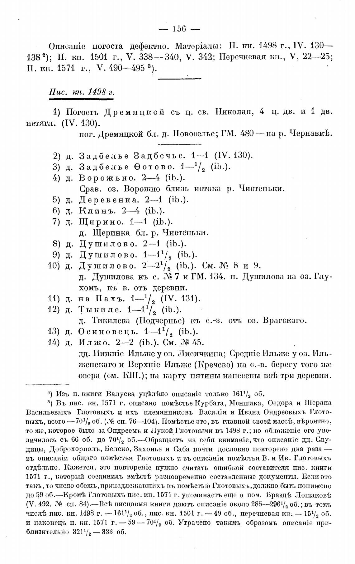 чисть пис. кн. 1498 г. — 1611/2 об. , пис. кн. 1501 г. —49 об. , перечневая кн.
