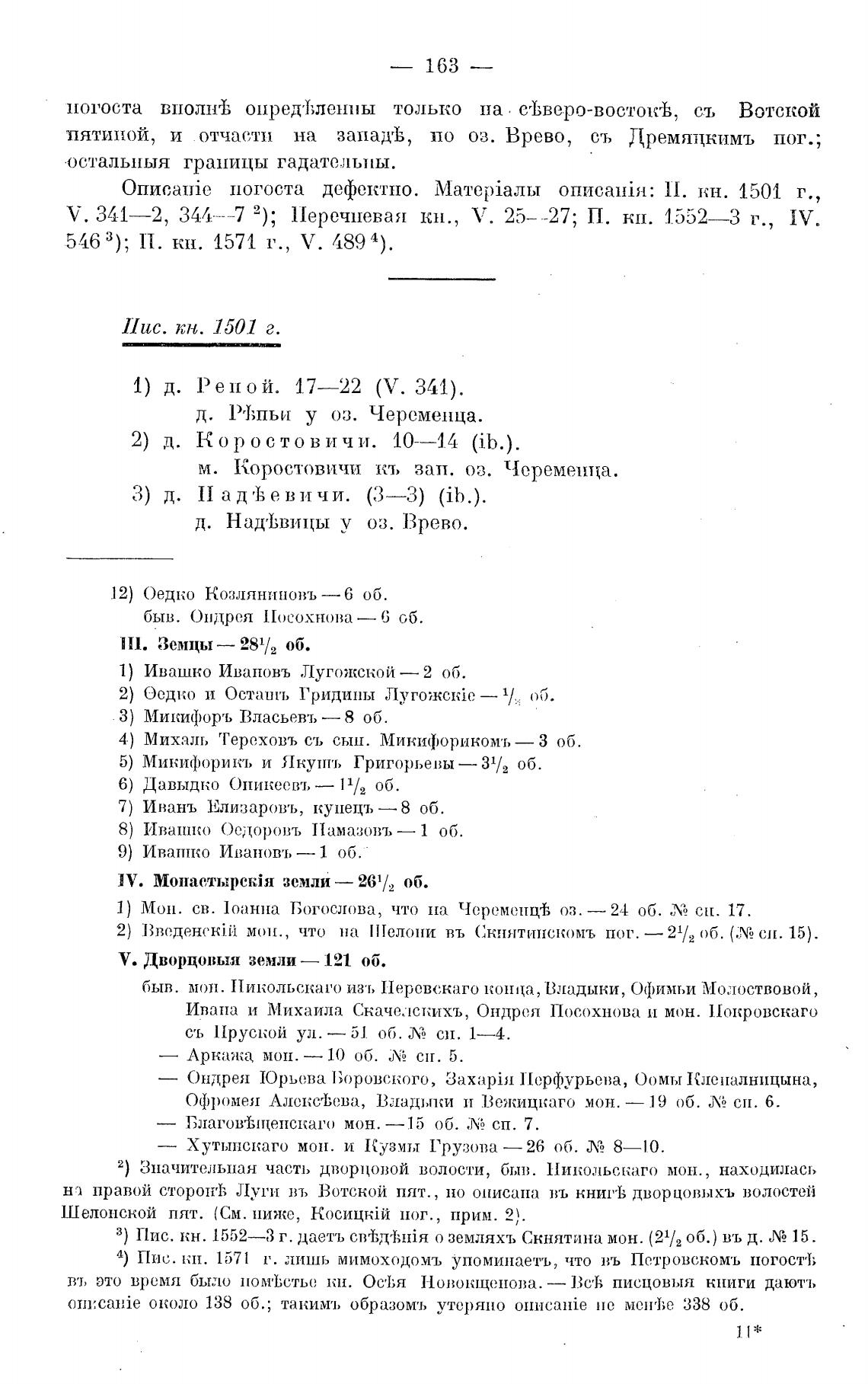 3) Пис. кн. 1552—3 г. даетъ свТ,деКIЙя о земляхъ Скнятина мон. (21/2 об.) въ д. 15.