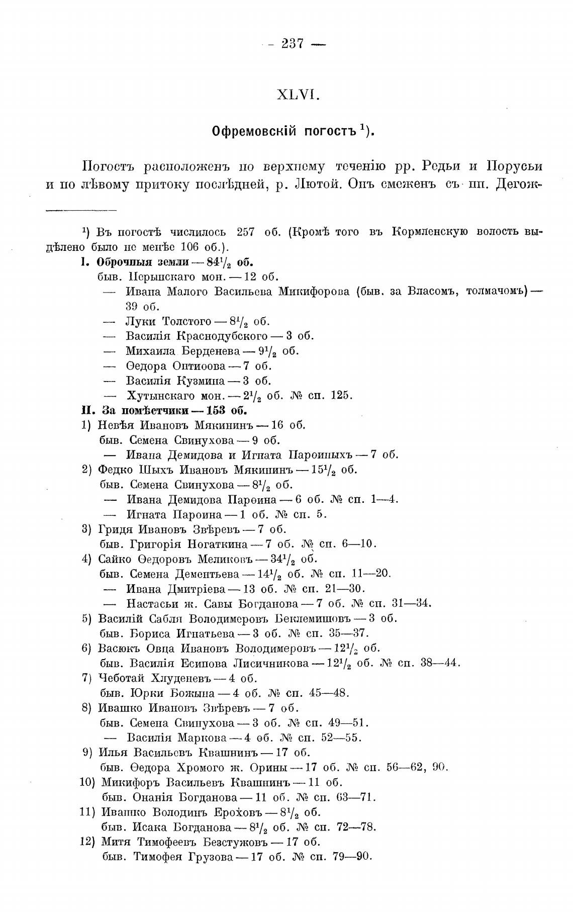 1) Въ погост% числилось 257 об. (Кром% того въ Кормленскую волость вы-