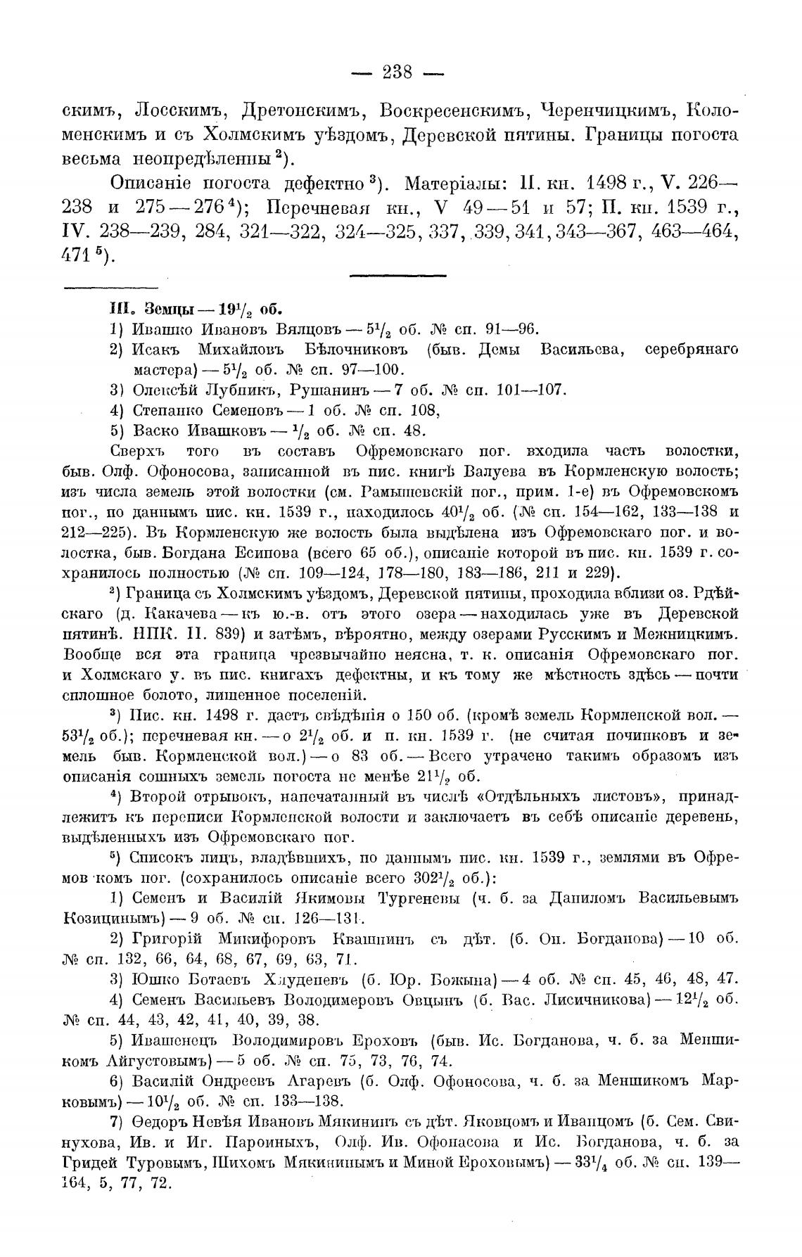3) Пис. кн. 1498 г. даетъ о 150 об. (кромеЬ земель Кормлепской вол. —