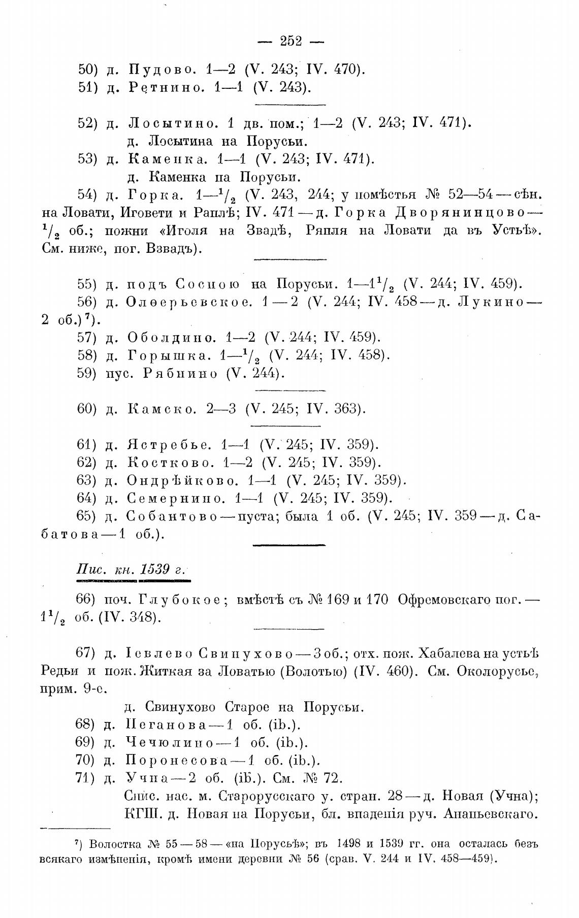 7) Волостка ЛА 55—58— «на Порусьт;»; въ 1498 и 1539 гг. она осталась безъ
