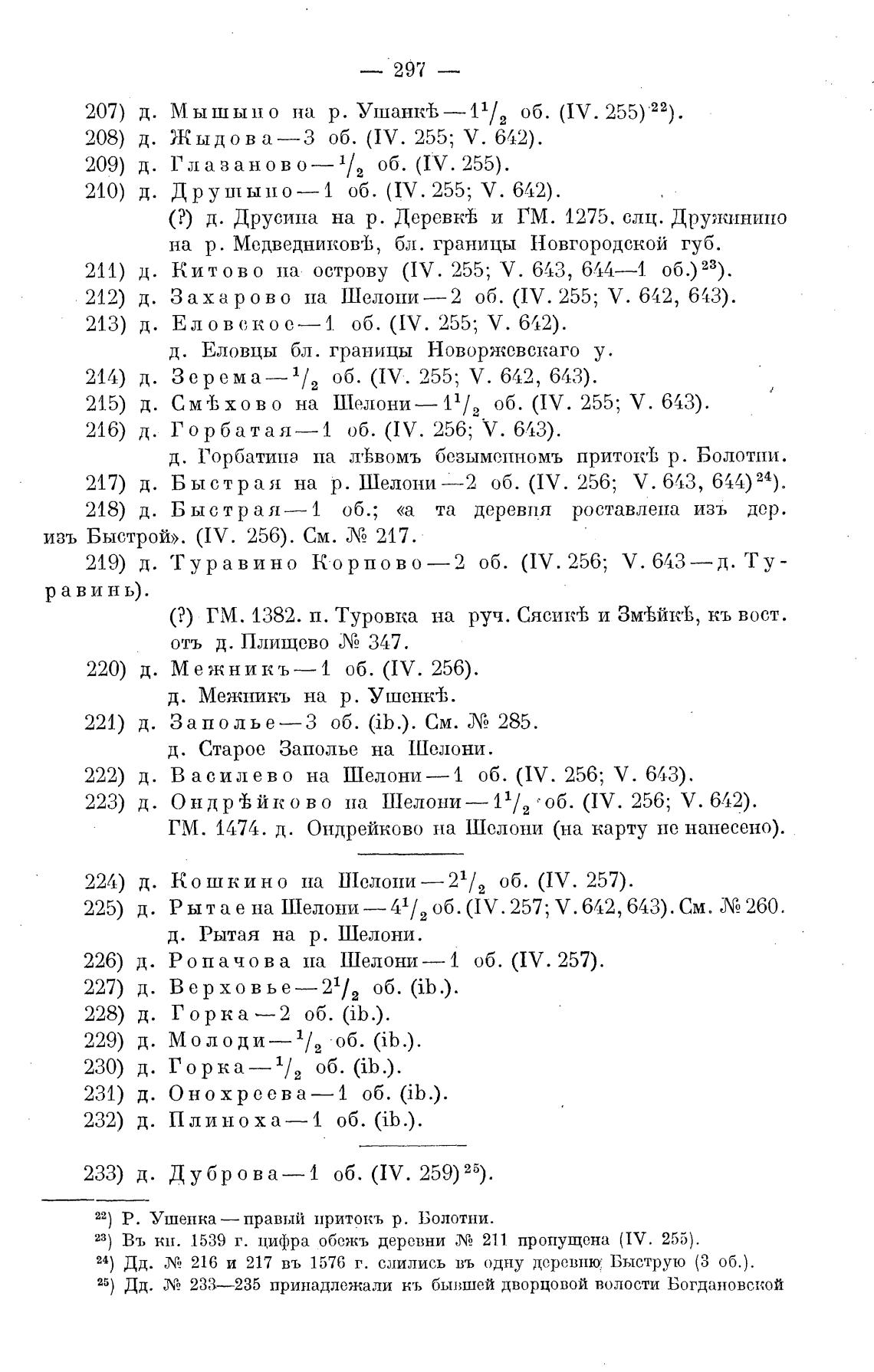 в) Въ кн. 1539 г. цифра обежъ деревни eNe 211 пропущена (IV. 255).