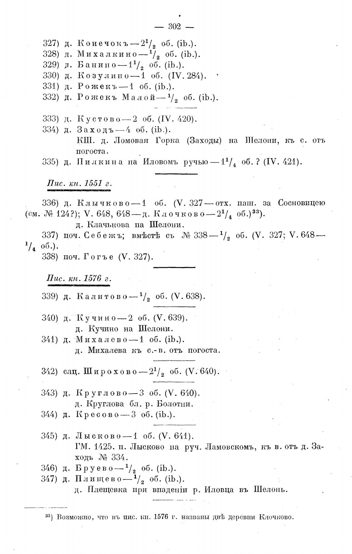 33) Возможно, что въ пис. кн. 1576 1'. названы двтз деревни Клочково.