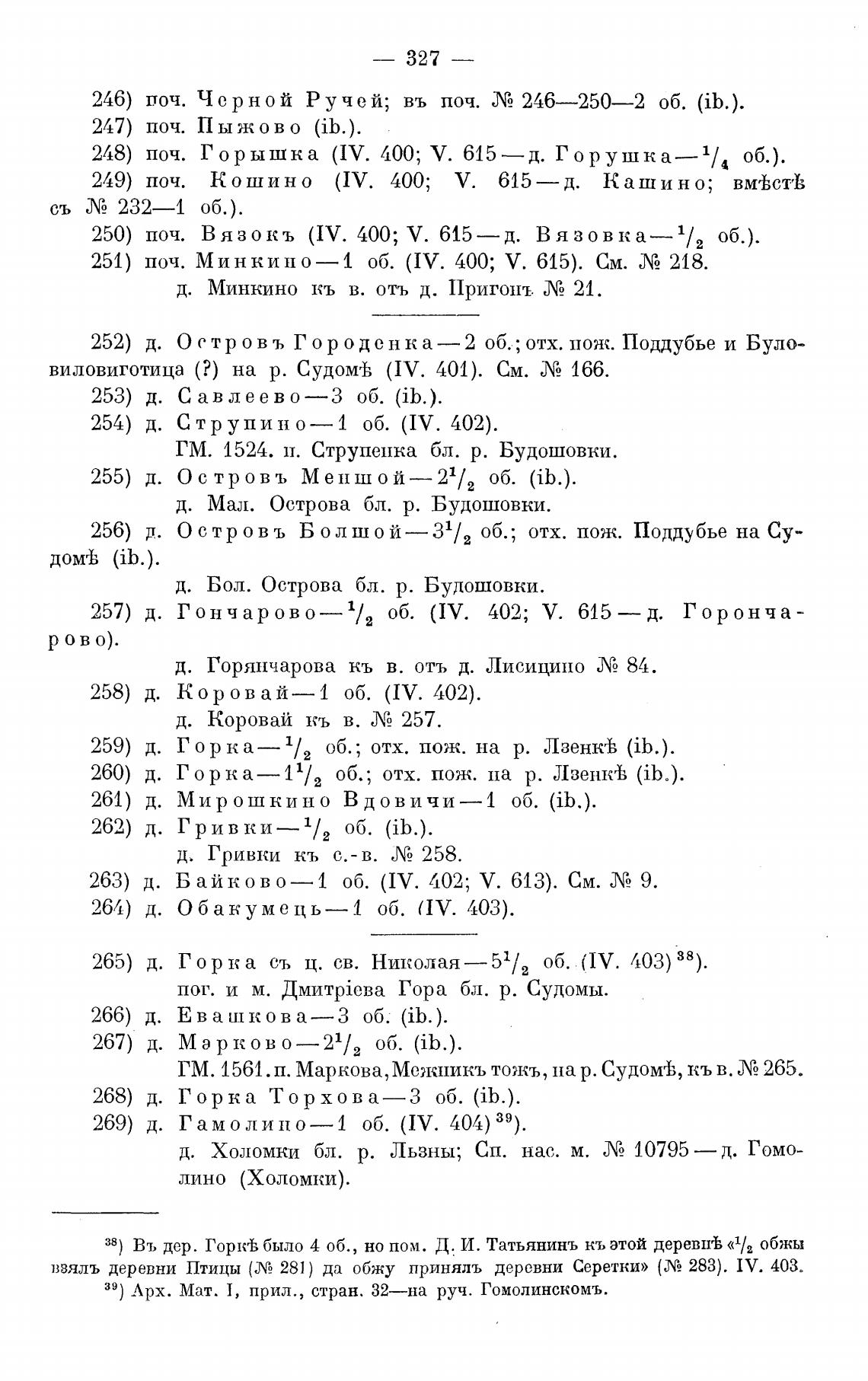 38) Въ дер. ГоркеЬ было 4 об., но пом. Д. И. Татьянинъ кь этой деревп'В «1lz обжы