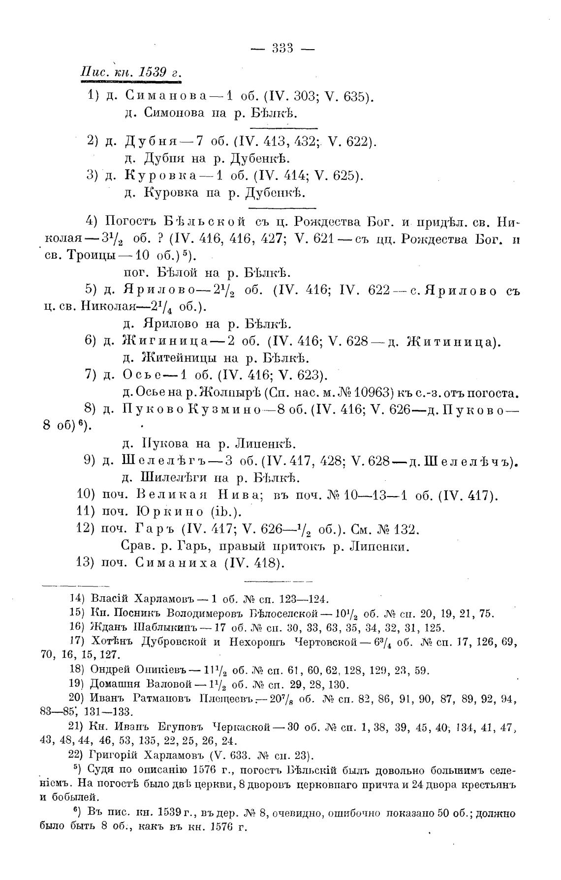 б) Въ пис. кн. 1539 г., въ дер. ЛА 8, очевидно, ошибочно показано 50 об.; должно