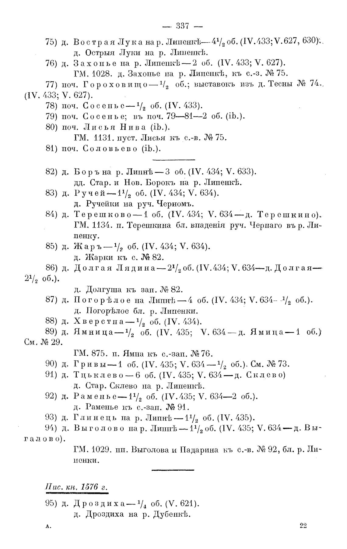 82) д. Борь на р. липнеь—з 06. (IV. 434; V. 633).