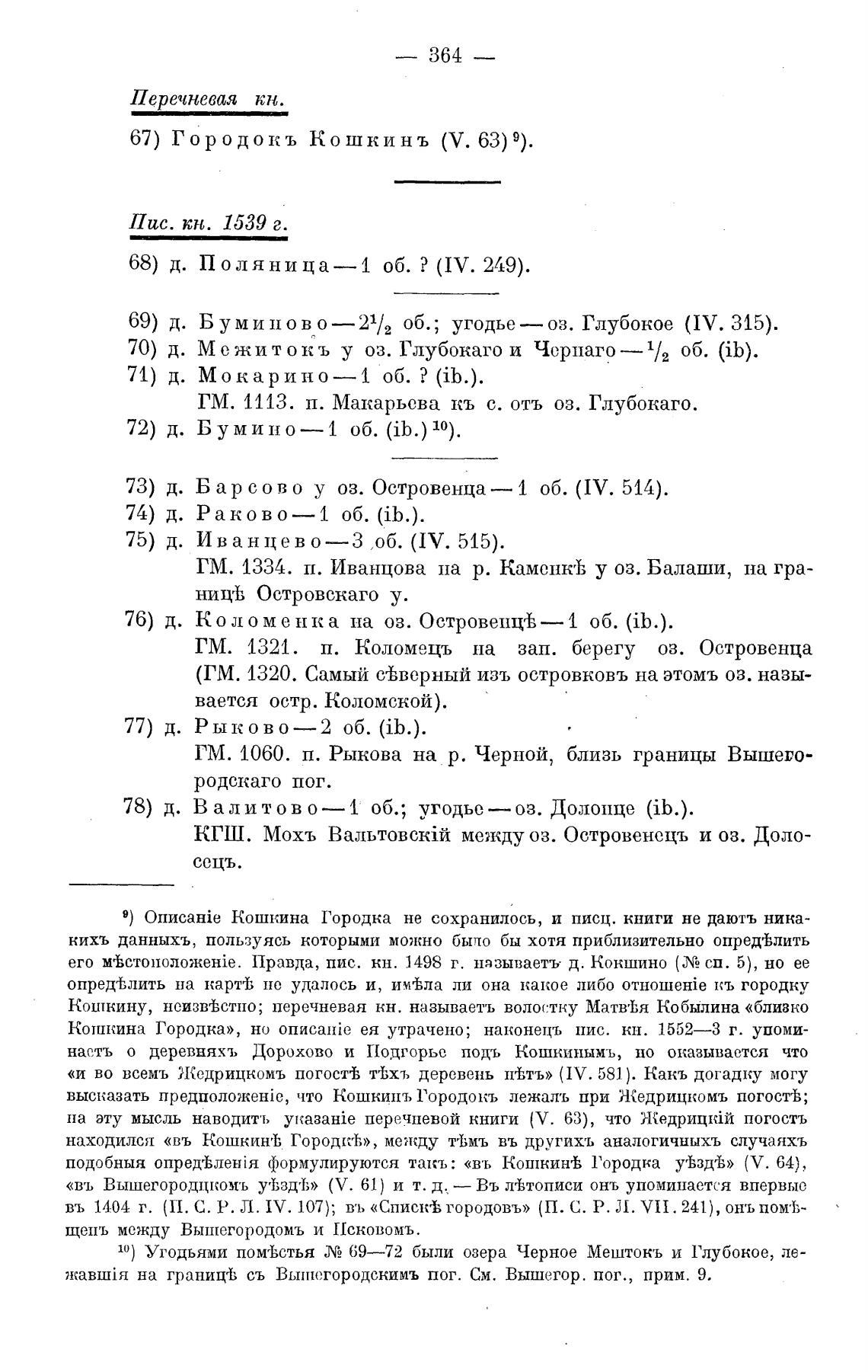 9) Кошкина 1'ородка не сохранилось, и писц. книги не даютъ ника-