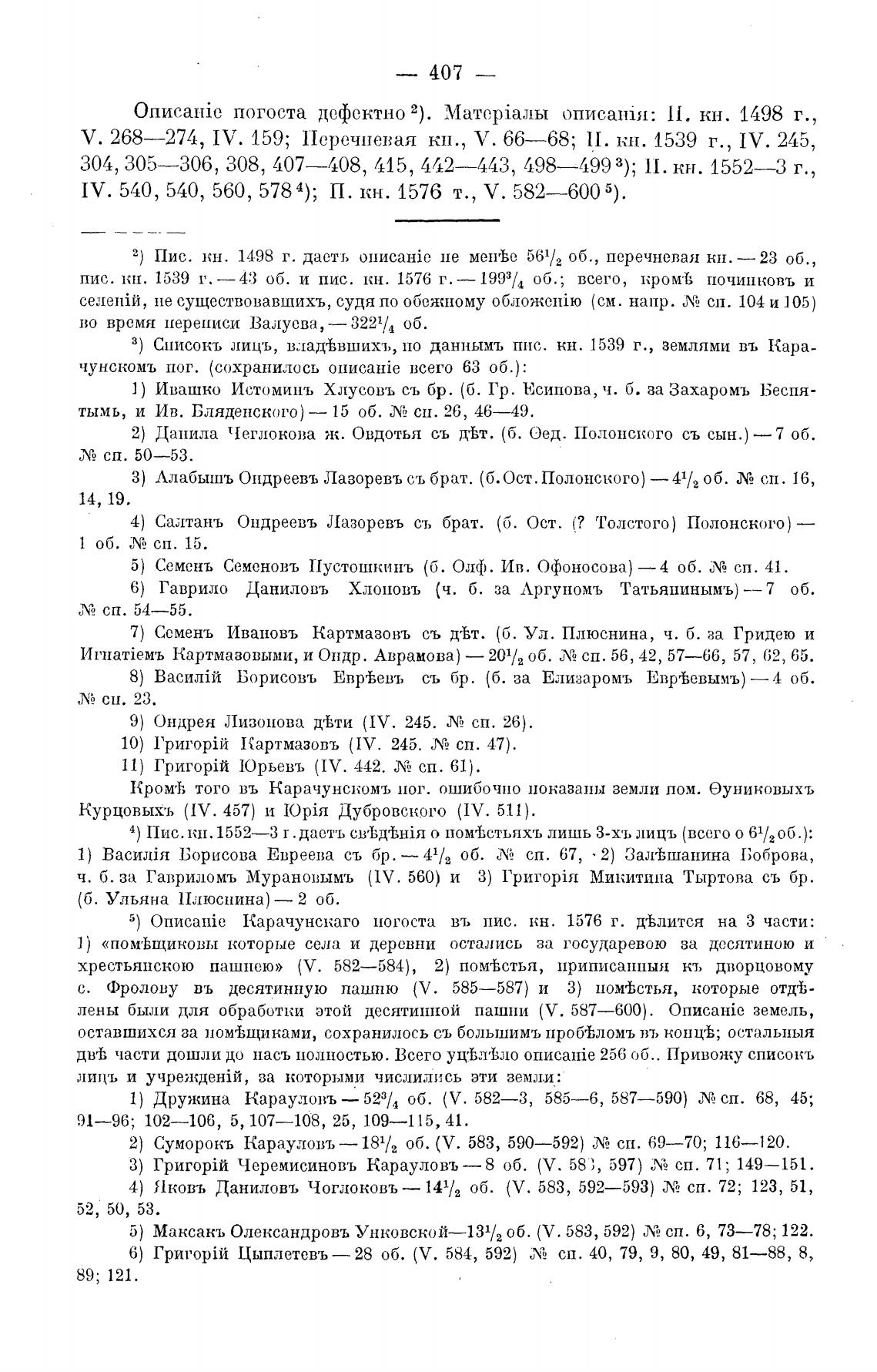 5) Описа:йе Карачунскаго погоста въ пис. кн. 1576 г. хЬлится на З части: