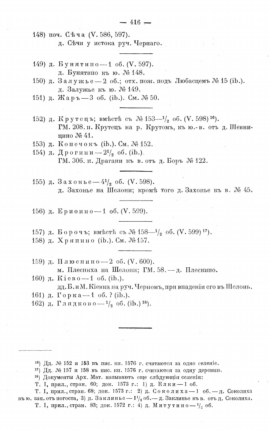 17) Дд. ЛА 157 и 158 въ пис. кн. 1576 г. считаются за одну деревню.