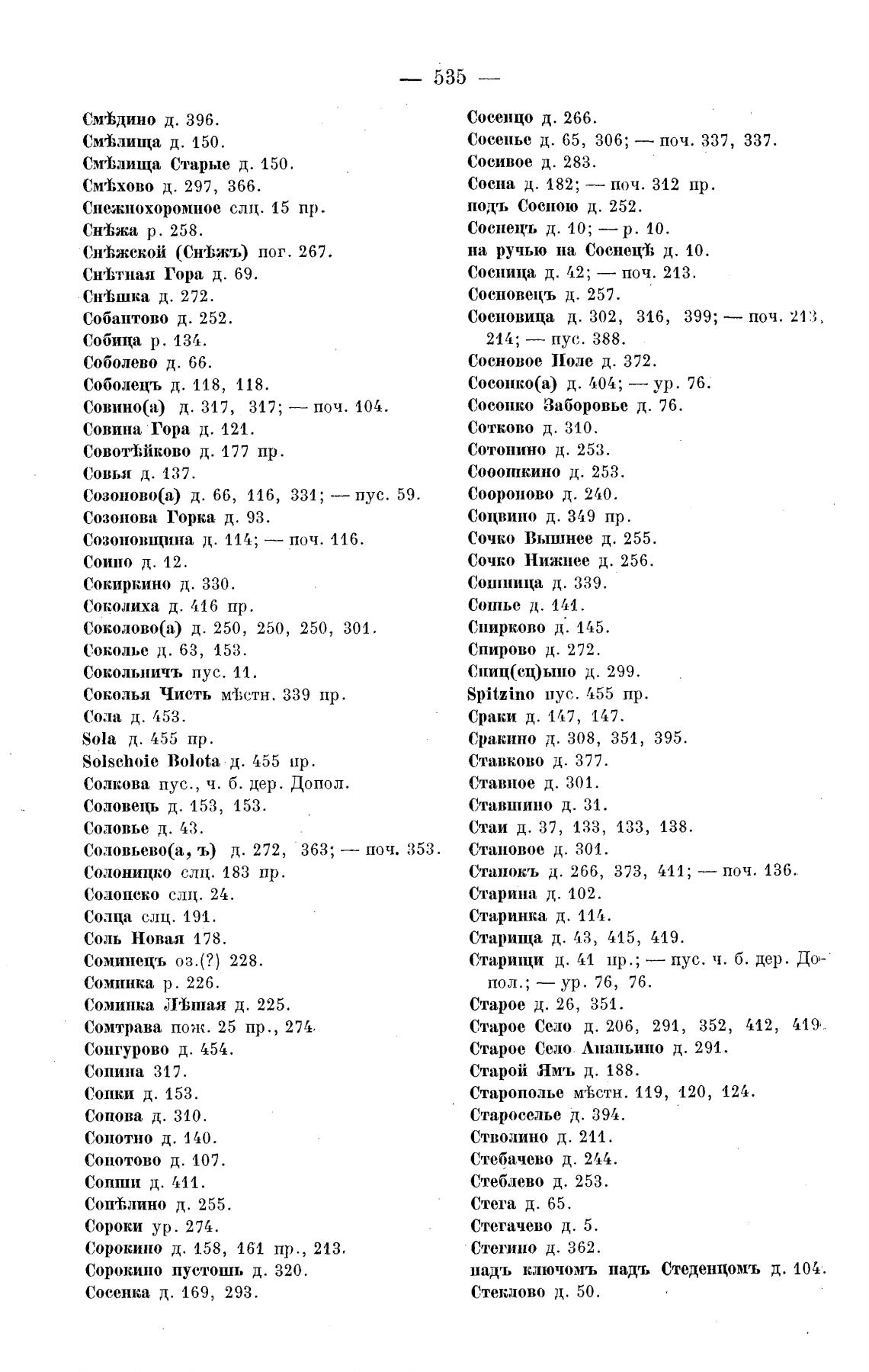Сосновица д. 302, 316, 399; — поч. 213.
