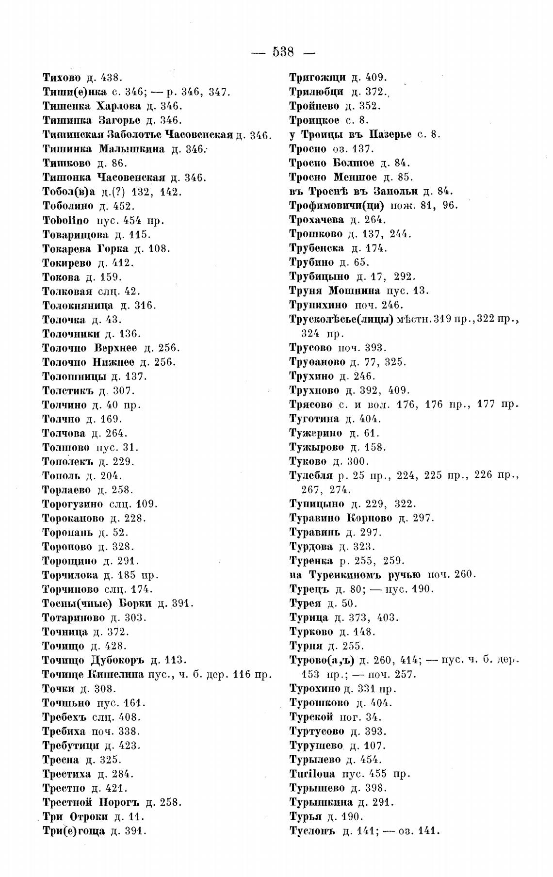 Турово(а,ъ) д. 260, 414; — пус. ч. б. дер.
