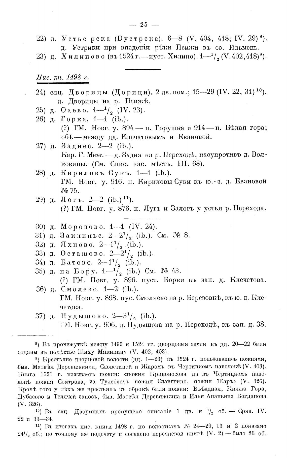Въ итогахъ пис. книги 1498 г. по волосткамъ ЛА 24—29, 13 и 2 показано
