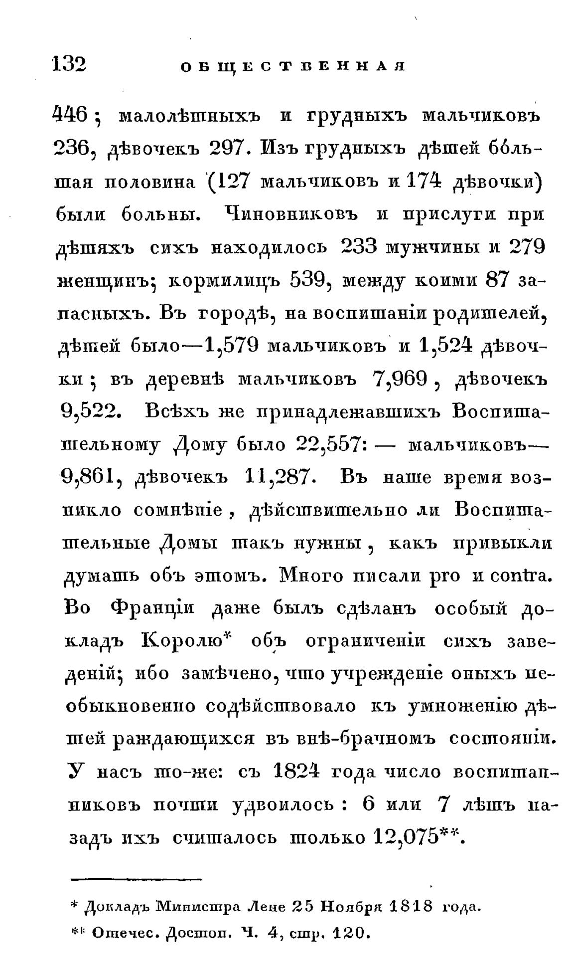 * Докладъ Министра Лене 25 Ноября 1818 года.