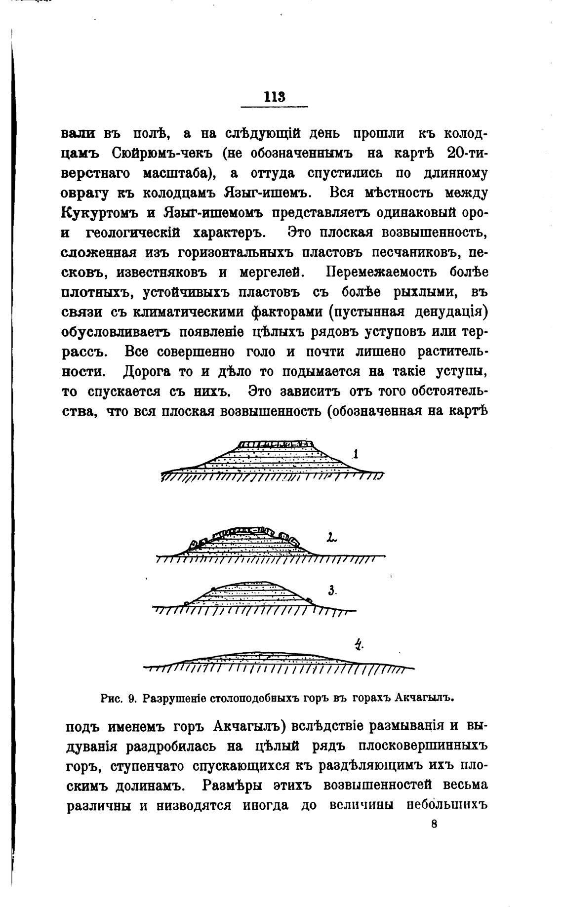 Рис. 9. столоподобвыхъ горь въ горахъ Акчагылъ.