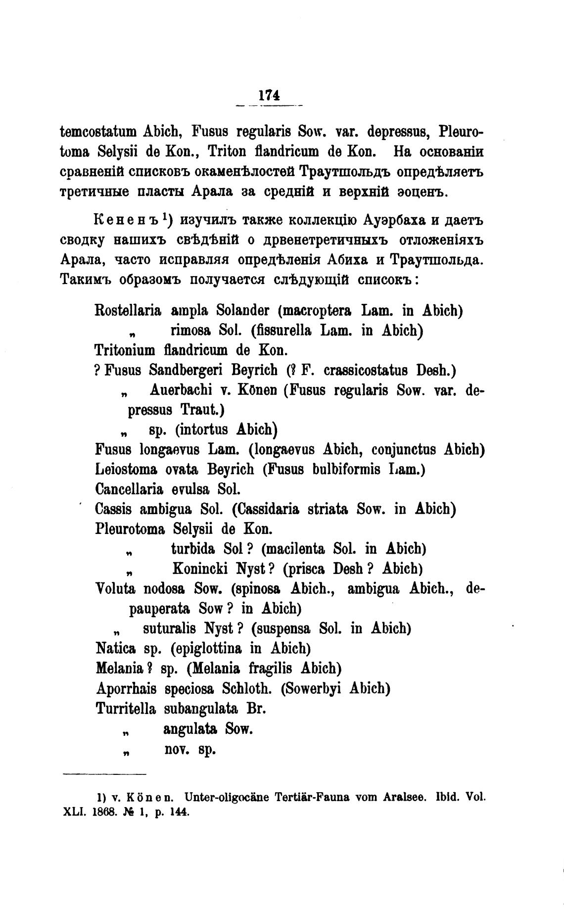 1) v. Кёп е п. Unter-oligocine Tertiir-Fauna vom Aralsee. 1bid. Vol.