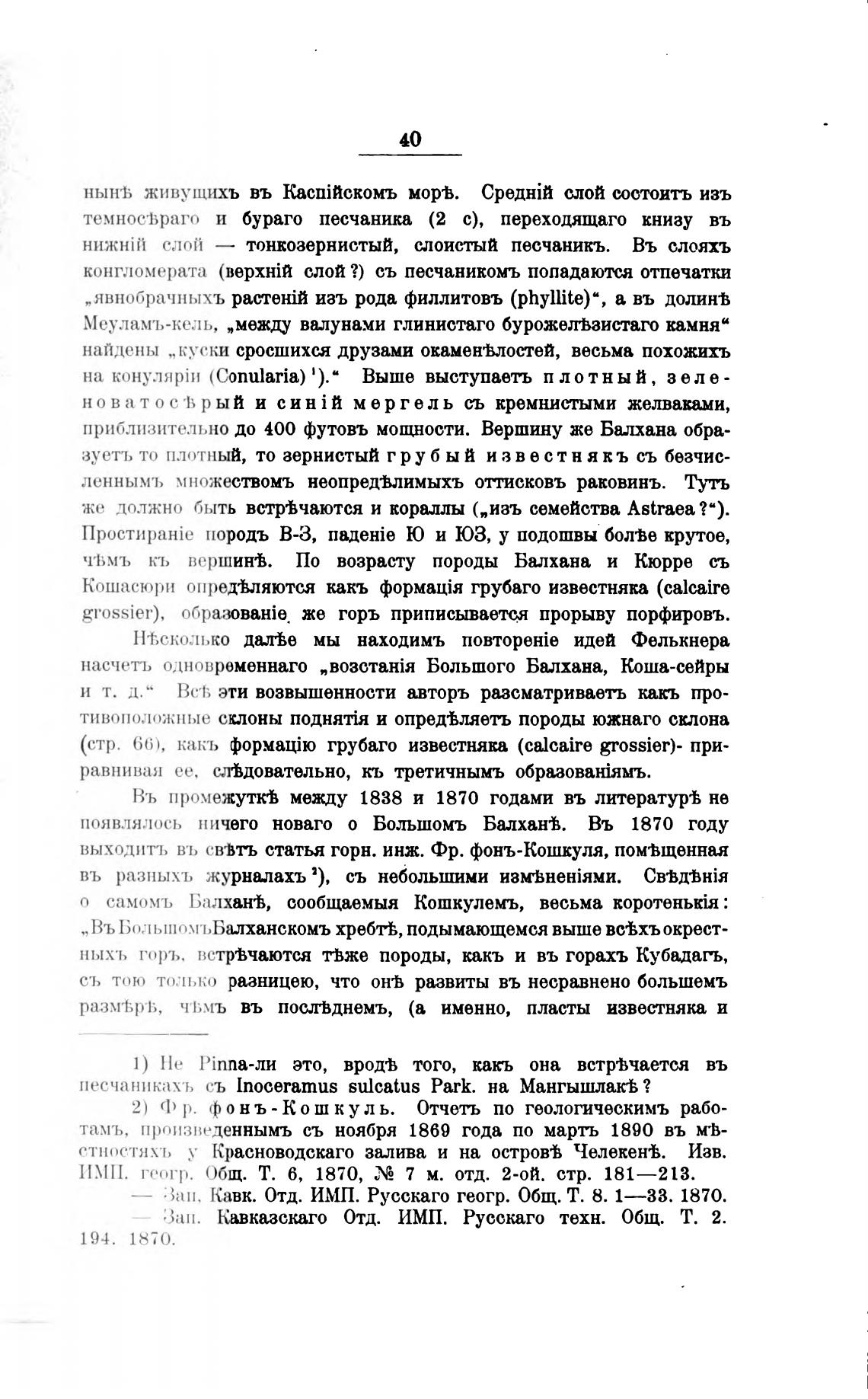 2) Ф р. фон ъ- Кош куль. Отчеть по геологическимъ рабо-