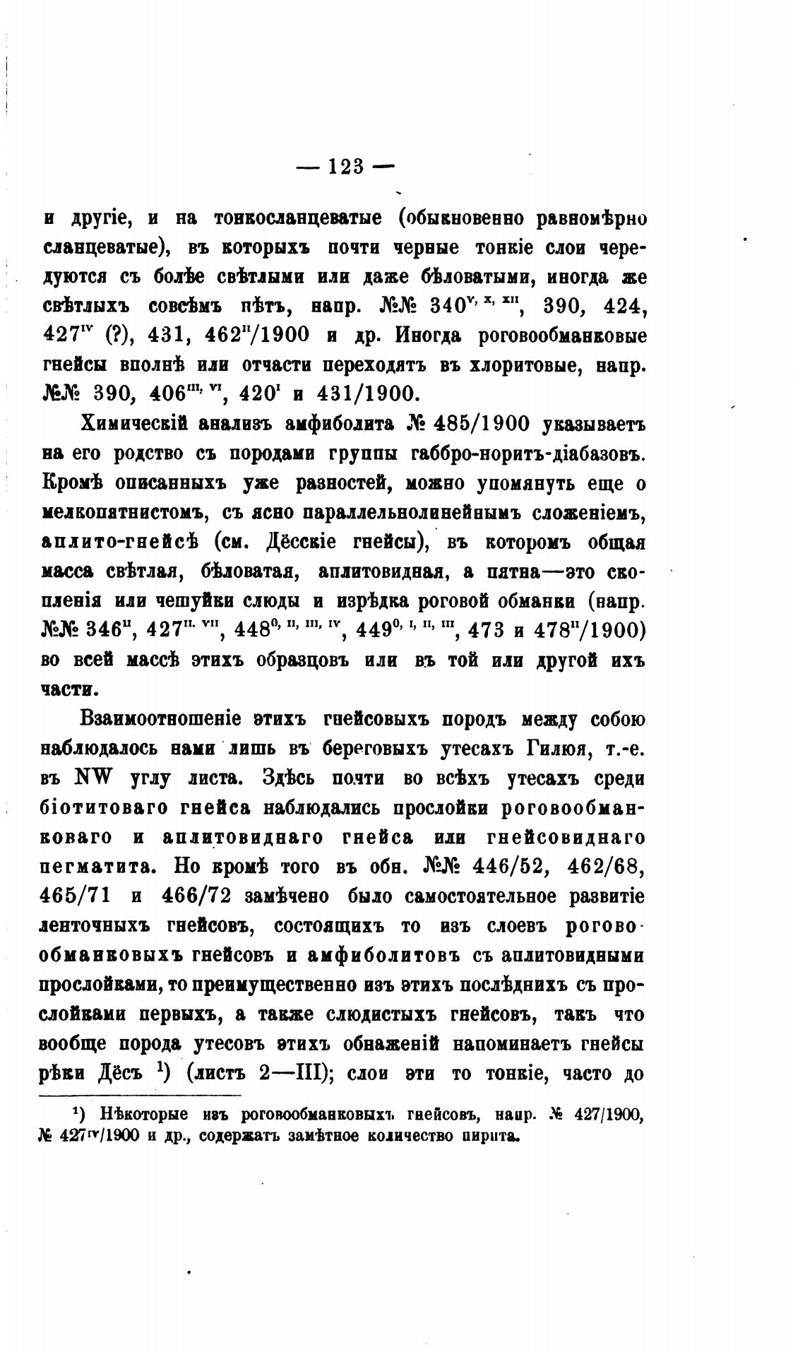 1) Н'Ькоторые ивъ роговообманковым. гнейсовъ, напр. .Ч 427/10,